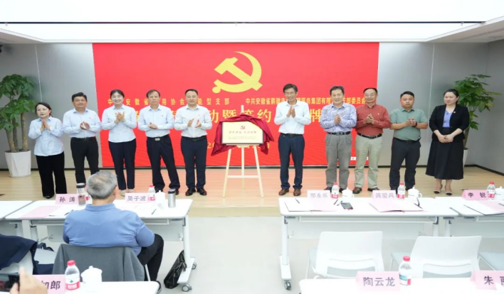 党建共建仪式现场气氛热烈,省信用协会功能型党支部和安徽省鹏徽市场管理服务集团有限公司支部委员会签订了支部共建协议书,明确了共建目标、任务和措施,旨在通过组织联建、资源共享、活动联办等方式,实现党建工作与企业发展同频共振。