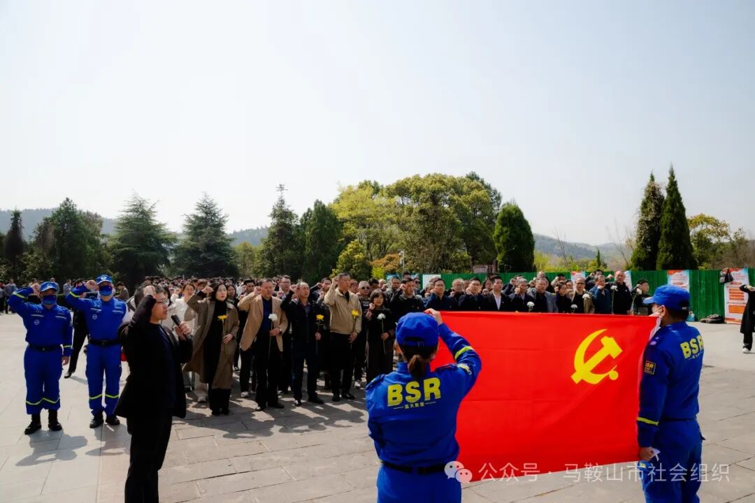 为缅怀革命先烈,传承红色基因,4月2日上午,马鞍山市民政局社会组织综合党委、市社会组织党建指导中心在濮塘革命烈士陵园开展“清明祭先烈”主题党日活动,市民政局、市委社会工作部分管负责同志及相关业务科室负责人,马鞍山同心缘社会服务发展中心、马鞍山蓝天救援队、市房地产协会、阜阳商会等市级社会组织党员代表共80余人参加。