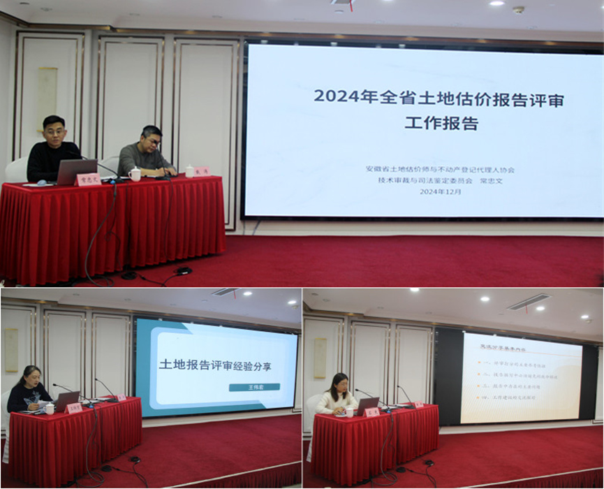 2024年12月26日安徽省土地估价师与不动产登记代理人协会在合肥成功举办安徽省报告评审专家培训会(编号:C51-J)。会议由协会考试与教育工作委员会主任戴涛主持,协会土地估价报告评审专家、青年专家近百人参加此次培训班。