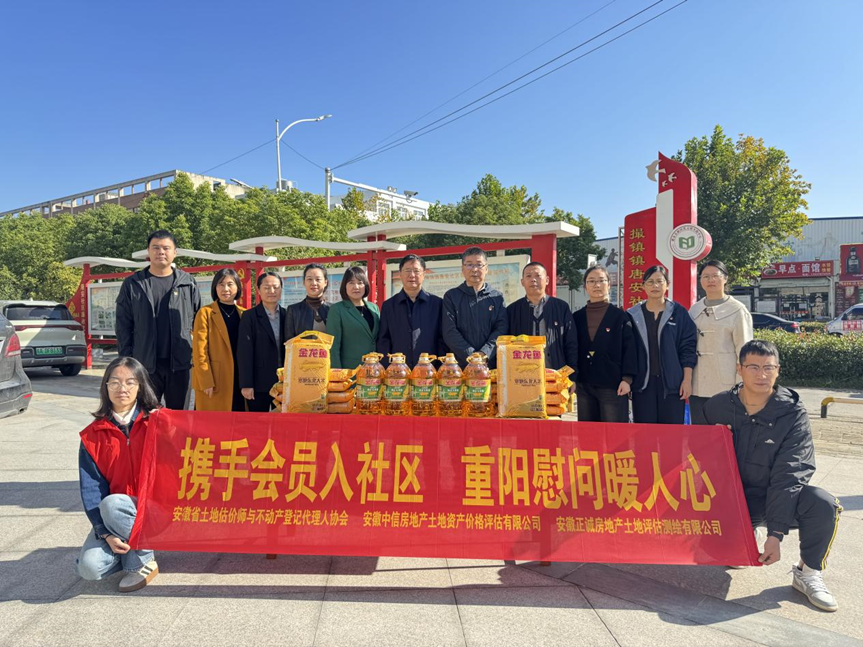 为弘扬中华民族尊老敬老传统美德,2025年10月24日,安徽省土地估价师与不动产登记代理人协会党支部携手安徽中信房地产土地资产价格评估有限公司、安徽正诚房地产土地评估测绘有限公司,共同走进肥东县撮镇镇唐安社区,开展了重阳慈善慰问活动,为社区老人们送去温暖与精神慰藉。