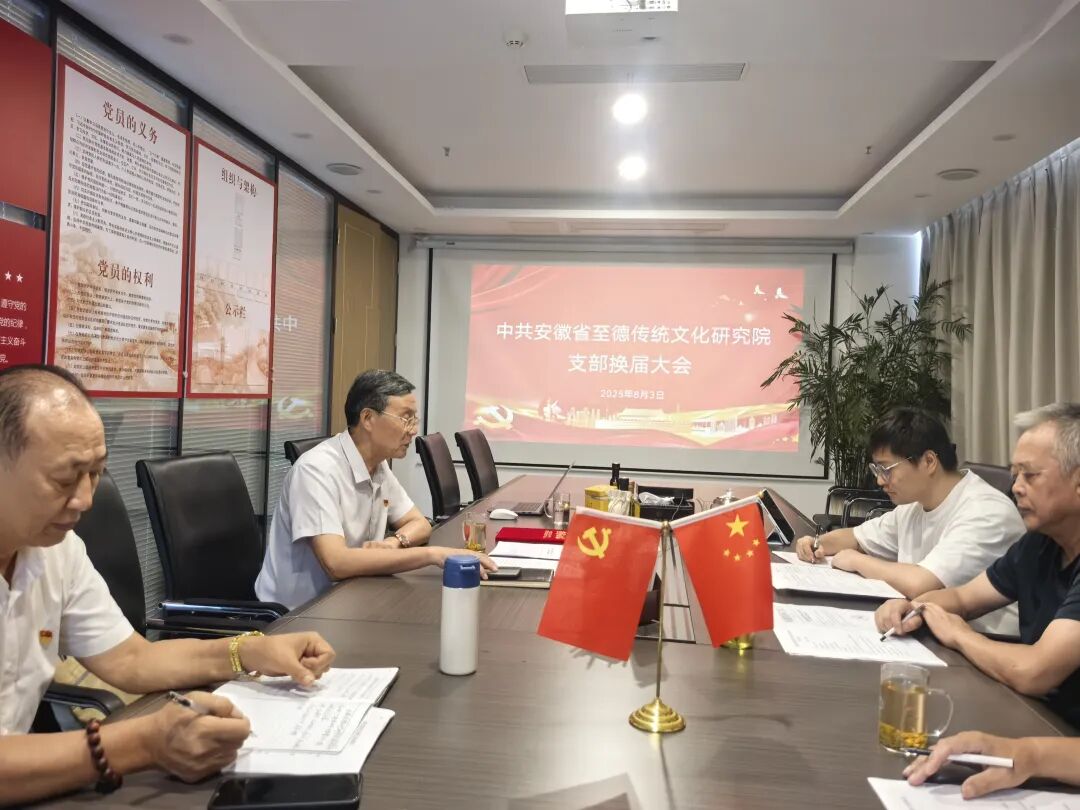 凝心聚力启新程薪火相传谱新篇。为进一步加强基层党组织建设,充分发挥党支部战斗堡垒作用,根据《中国共产党章程》、《中国共产党基层组织选举工作条例》和中共安徽省社会组织综合委员会《关于同意安徽省至德传统文化研究院党支部换届选举的批复》相关规定,安徽省至德传统文化研究院党支部于2025年8月3日上午隆重召开换届选举会议满完成新一届支部委员会的换届工作。