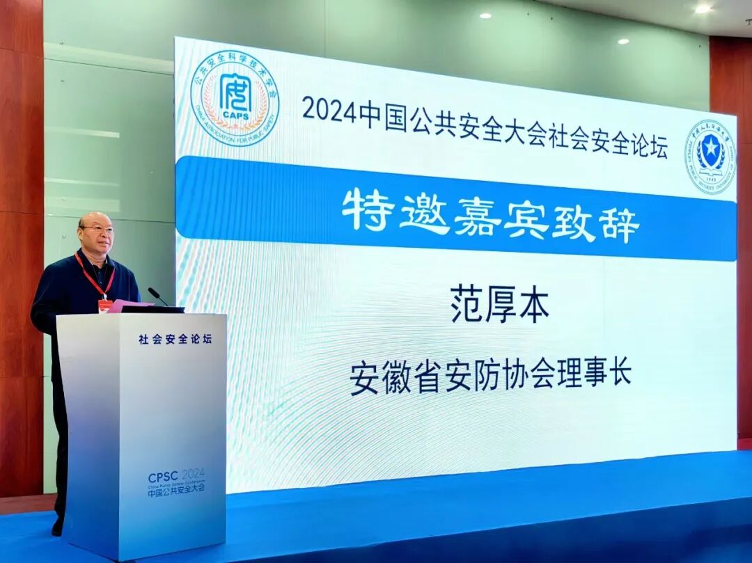 11月16日,由公共安全科学技术学会主办,合肥市人民政府、安徽省科学技术厅、安徽省工业和信息化厅、安徽省应急管理厅、安徽省住房和城乡建设厅支持的2024中国公共安全大会在合肥隆重开幕。作为本次大会协办单位,省安防协会理事长范厚本受邀出席开幕式并为社会安全论坛致辞。