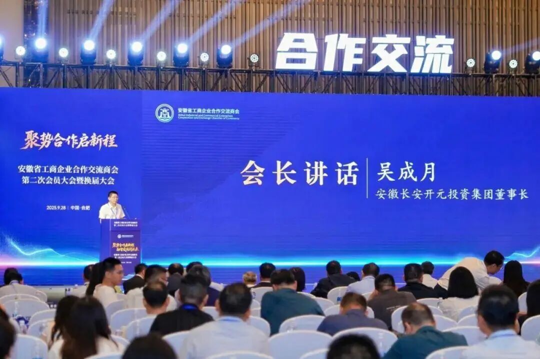 省工商企业合作交流商会会长、安徽长安开元投资集团董事长吴成月发言时,首先向全体会员的信任与支持表达诚挚感谢。他表示,连任是崭新的起点,未来将恪尽职守、不辱使命,积极发挥桥梁纽带作用,持续创新服务机制,全力赋能会员企业,形成发展合力,助力安徽省民营经济高质量发展。