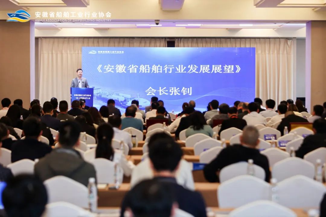安徽省船舶工业行业协会会长张钊以《安徽省船舶行业发展展望》为题发表主旨演讲。他指出,当前安徽船舶工业正处于“绿色化、智能化、高端化”转型关键期,需聚焦四大方向: